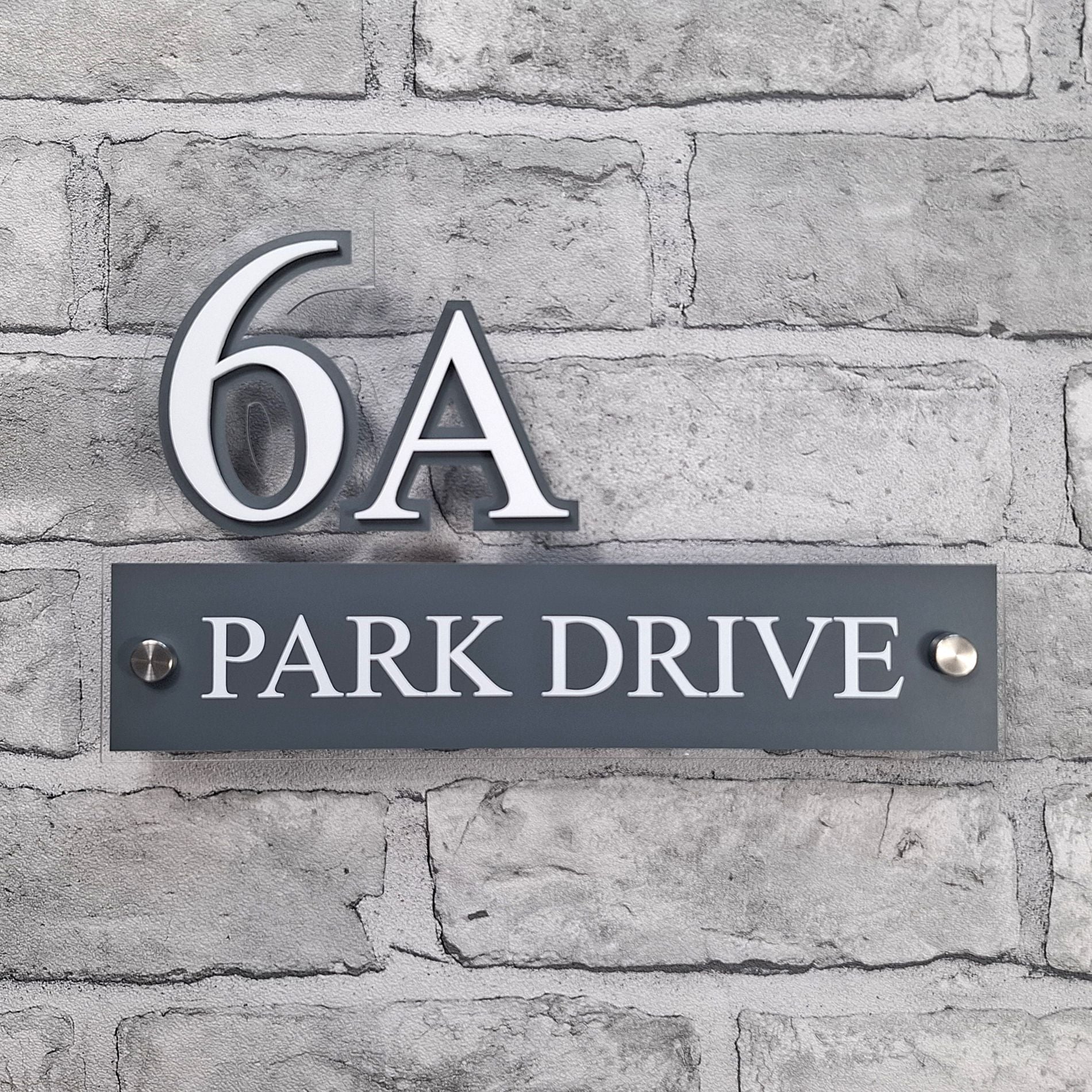 Laser-Cut Acrylic House Sign with 3D Raised Numbers — Modern Address Plaque in 11 Colours